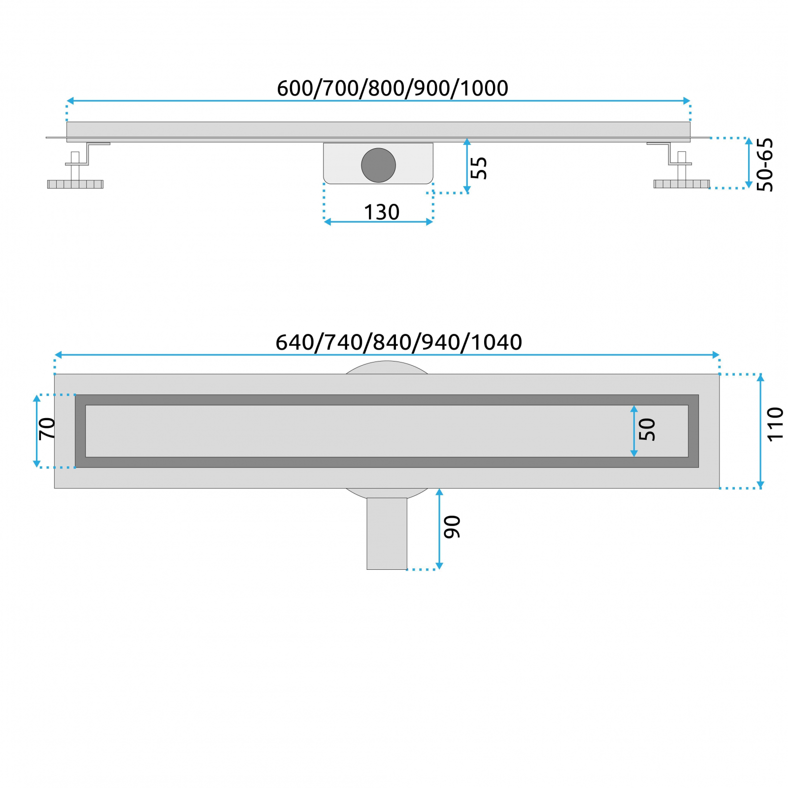 Disponibilă într-o varietate de dimensiuni, rigola se poate adapta ușor la diferite configurații și dimensiuni ale spațiilor de baie.