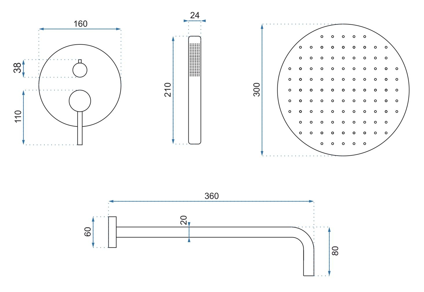 Inclus in set: baterie incastrata, cap de dus, umar pentru cap de dus, furtun 1500 mm, Para, suport pentru para, garnituri, box