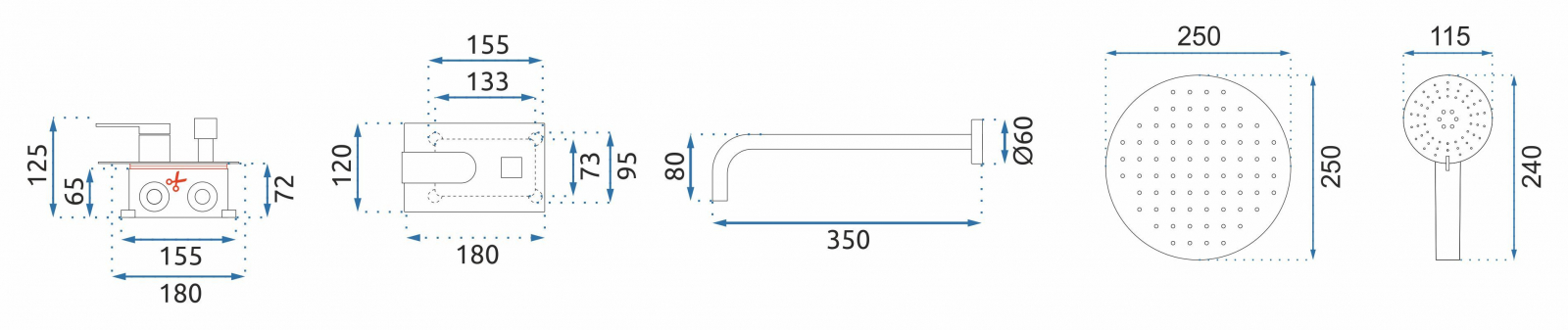 Inclus in set: baterie incastrata, cap de dus, umar pentru cap de dus, furtun 1500 mm, Para, suport pentru para, garnituri, box