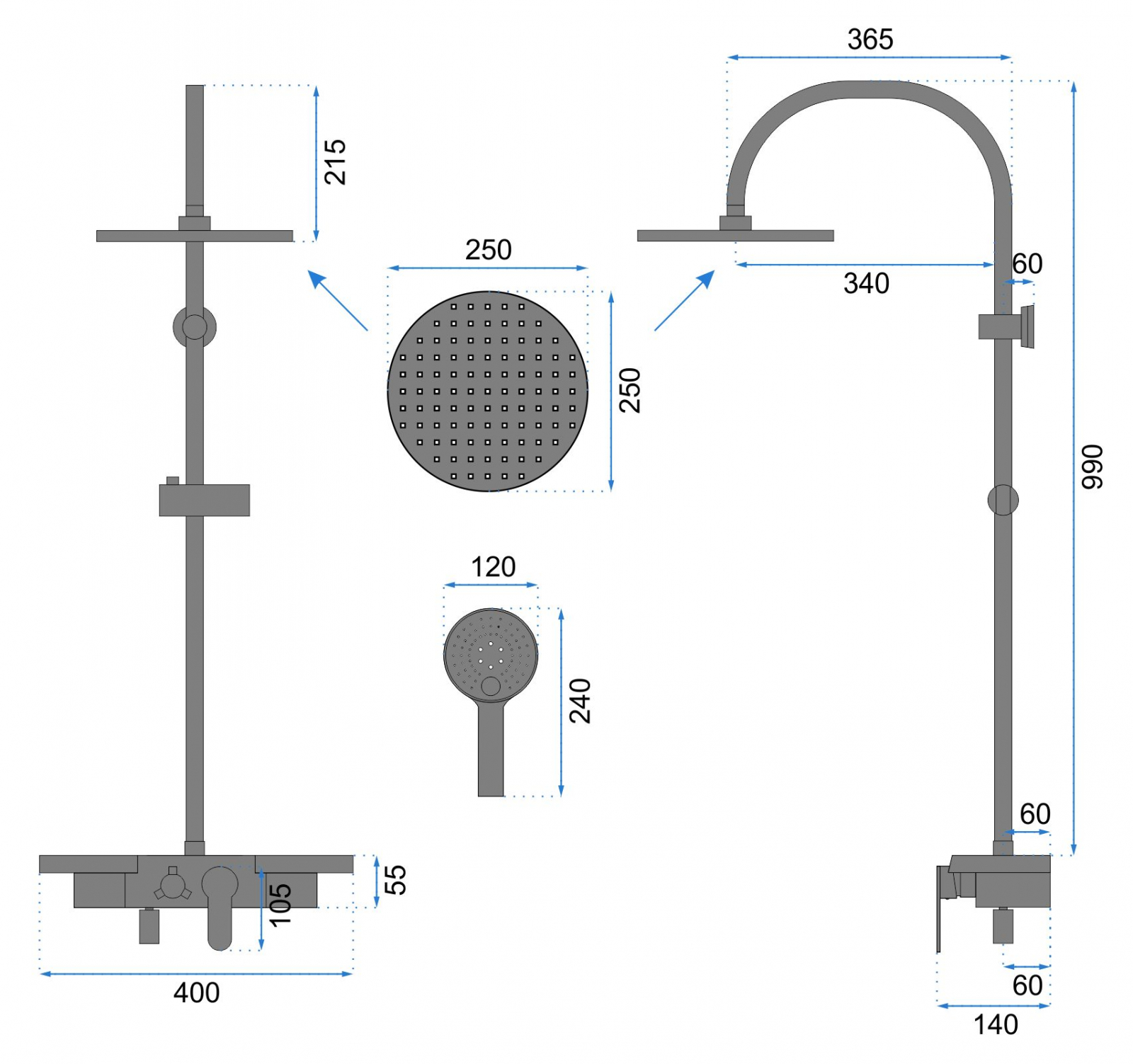Set de dus Vigo Black, anti calcar, negru, montaj pe perete